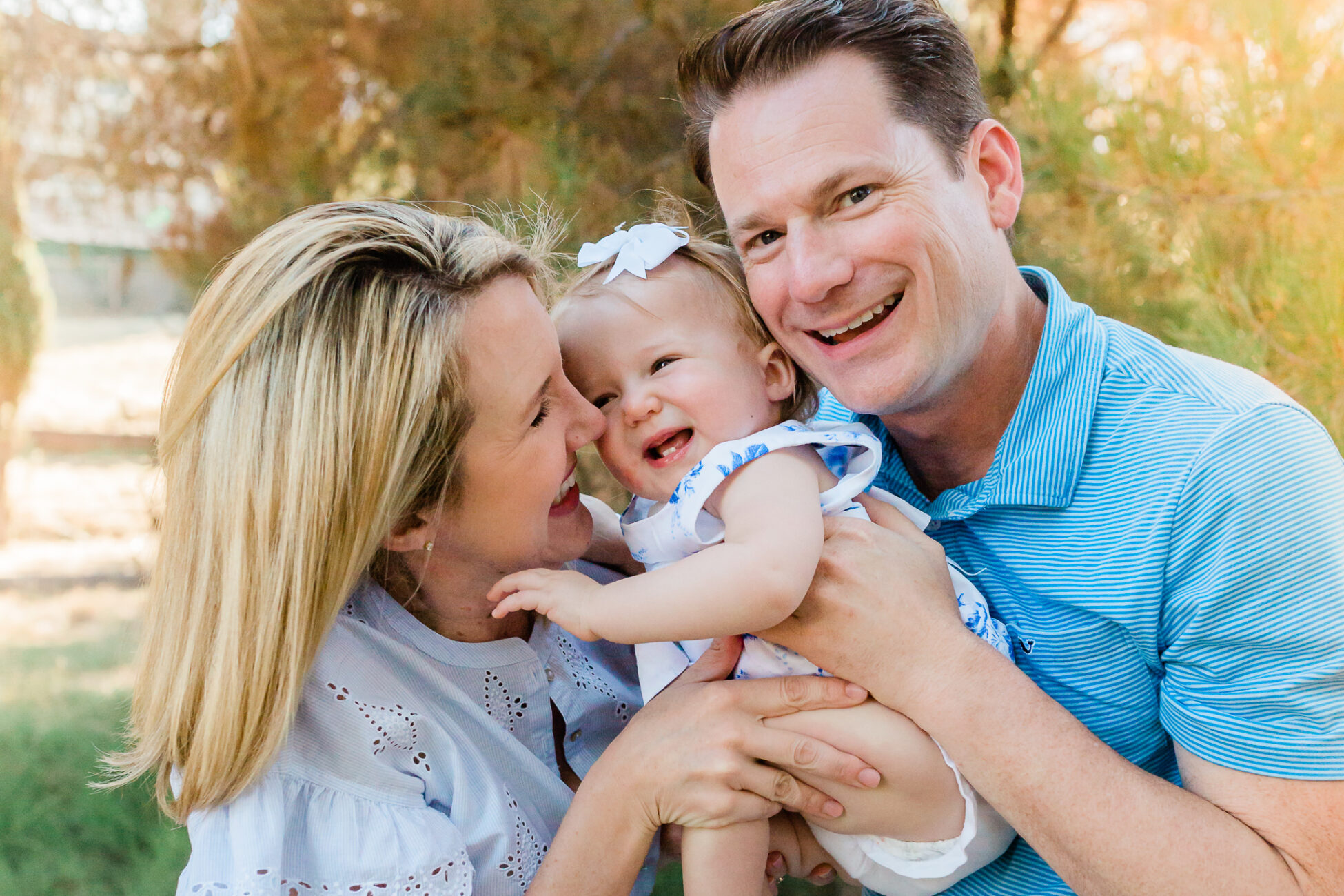 The first birthday of this younger sister was kicked off with a photo session at a local park, and continued with a large family cake celebration at home.
