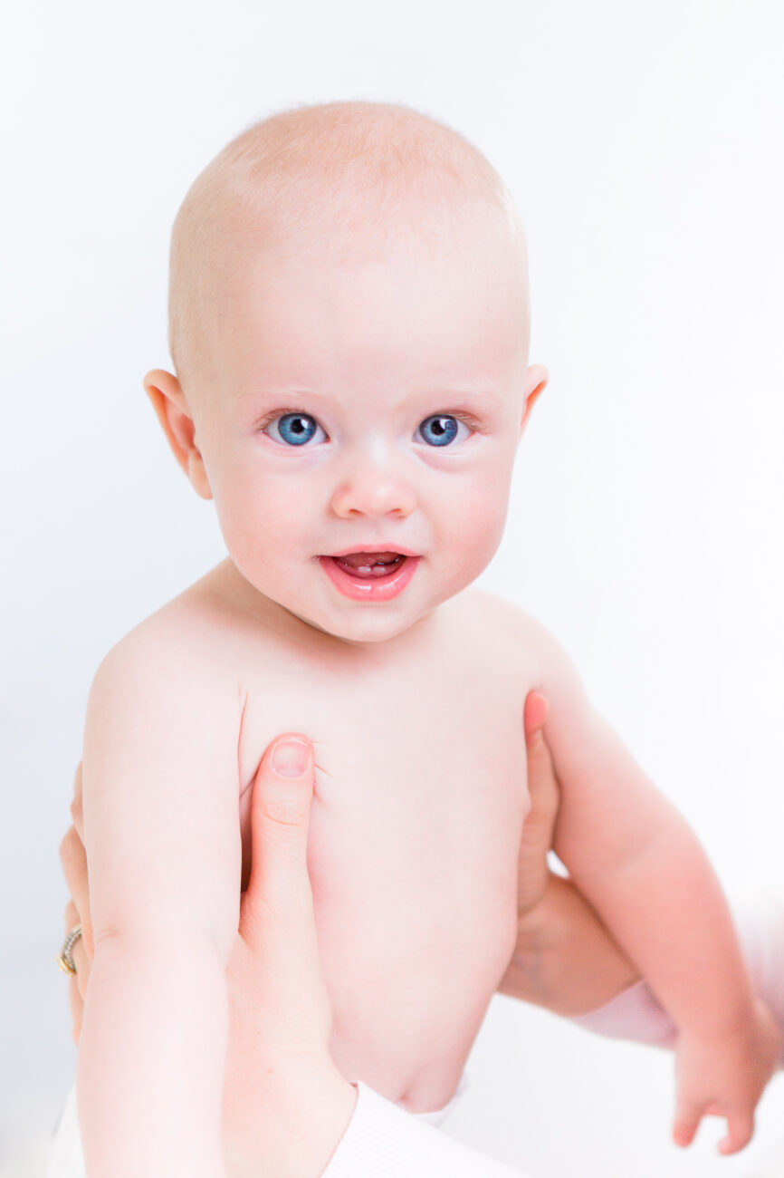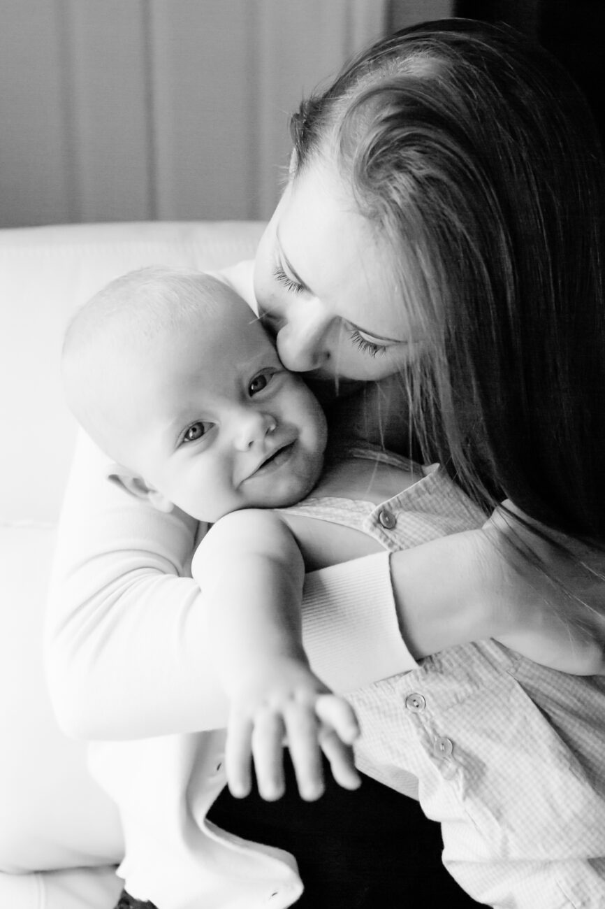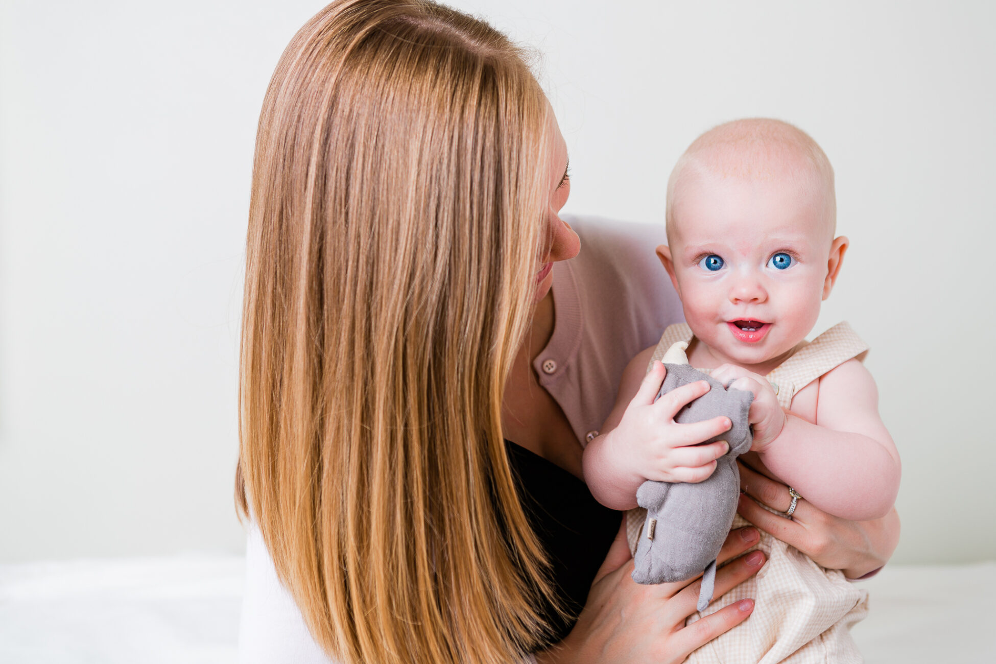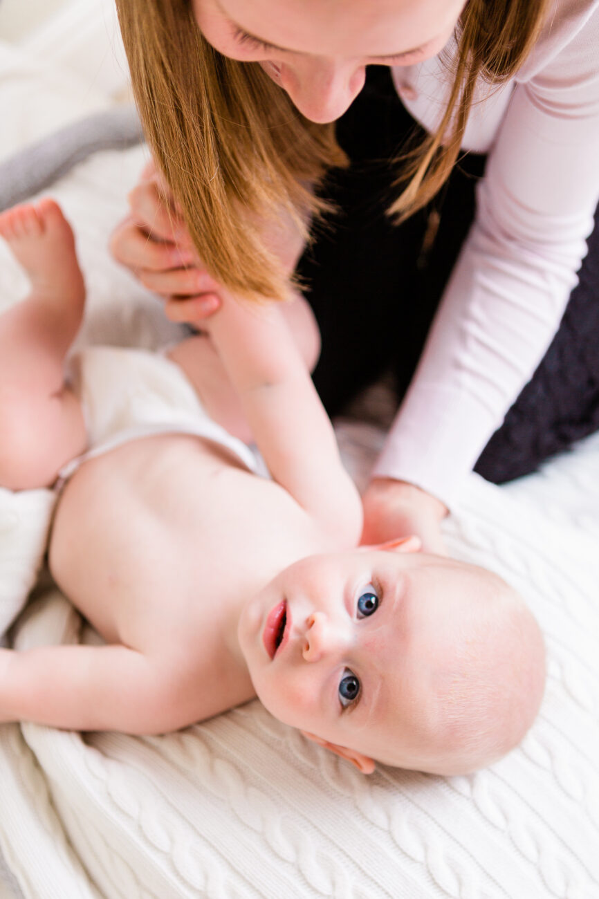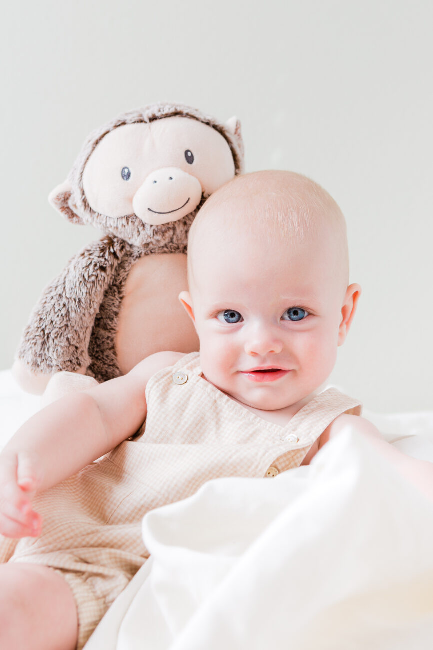 This little guy had the biggest, bluest eyes ever and a calm, sweet temperament. We posed him with a sentimental stuffed animal (gift from a treasured relative) and focused on details and the mother-son bond.