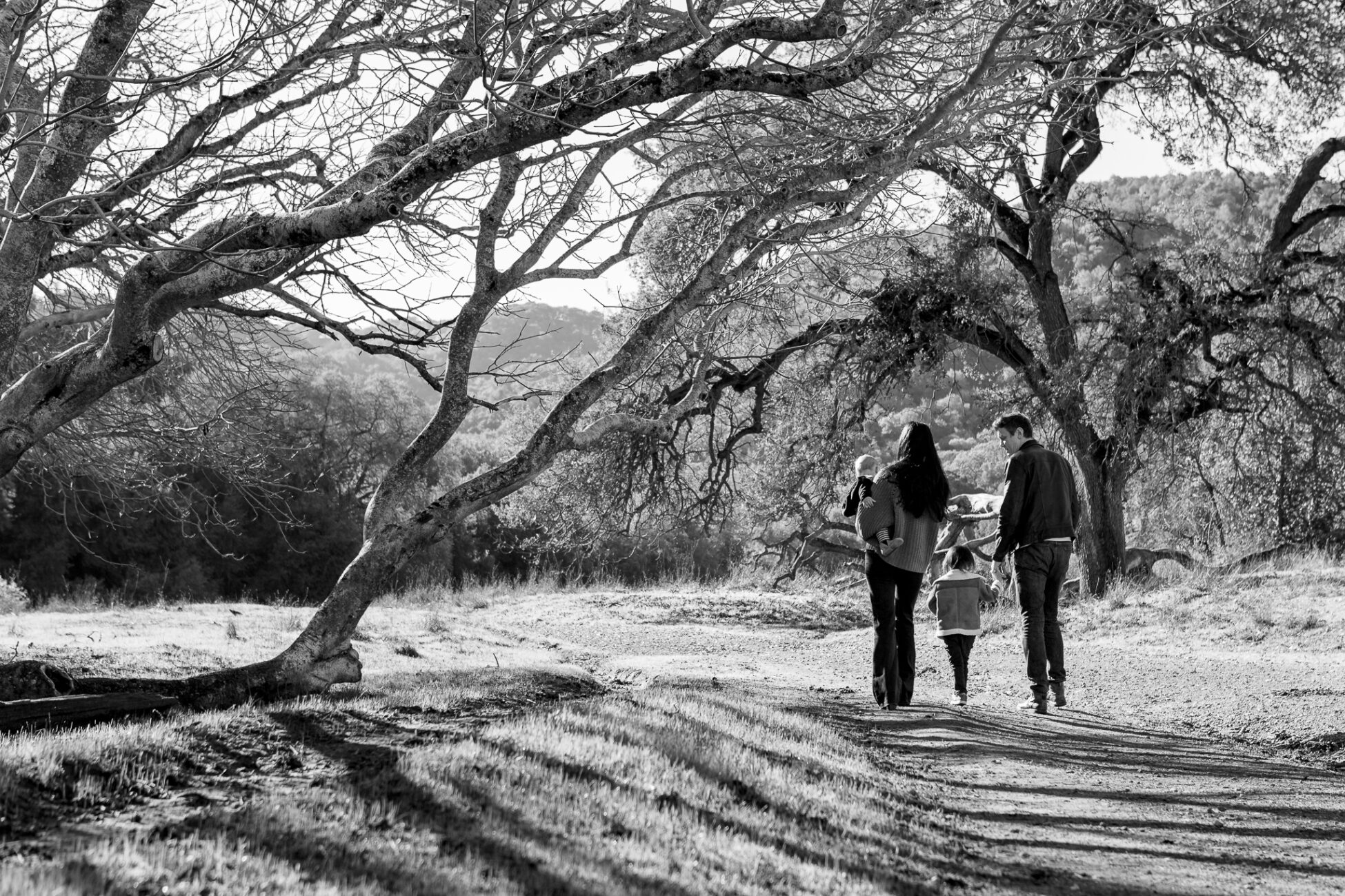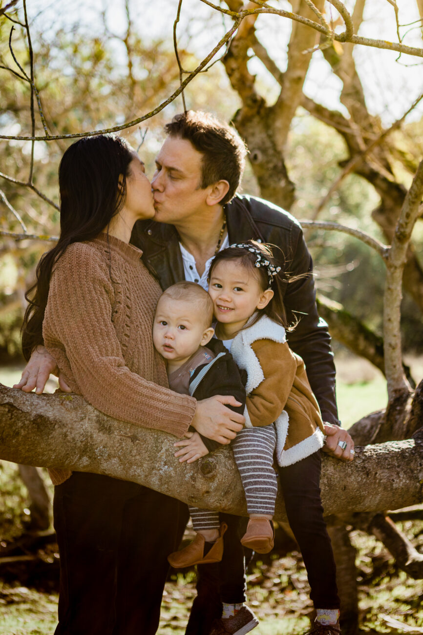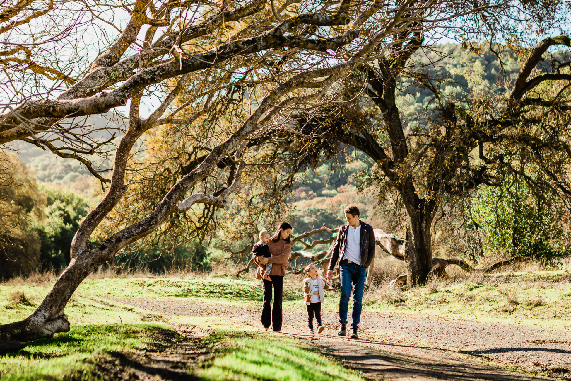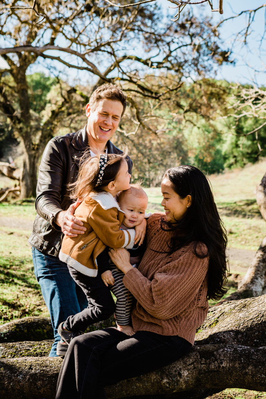 This family has a deep love of exploring nature, so we spent our time wandering through the trees in a local open space park. The husband and wife enjoy classic suspense films with rich, saturated tones, so I used a more dramatic editing touch.