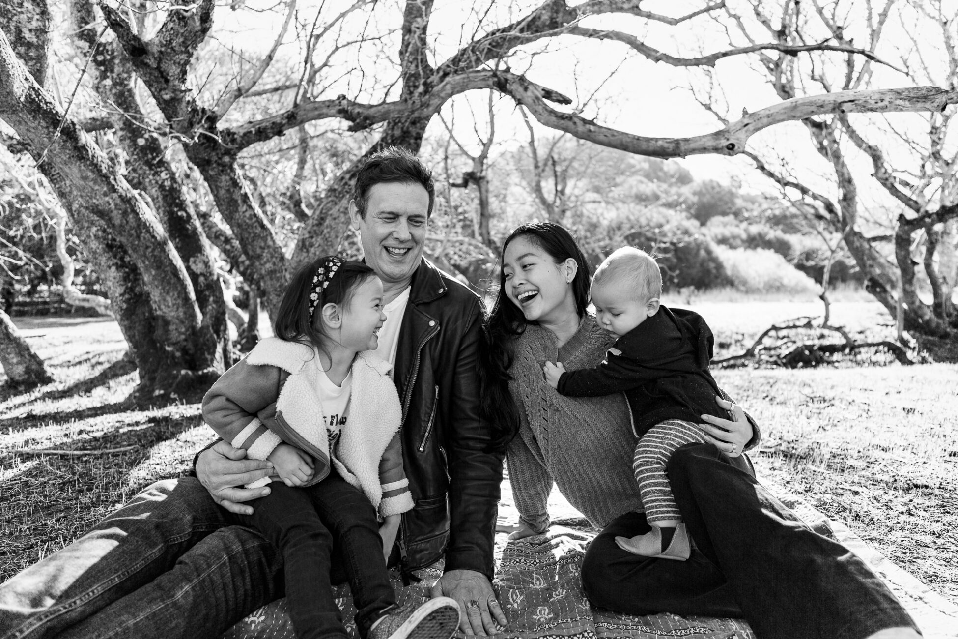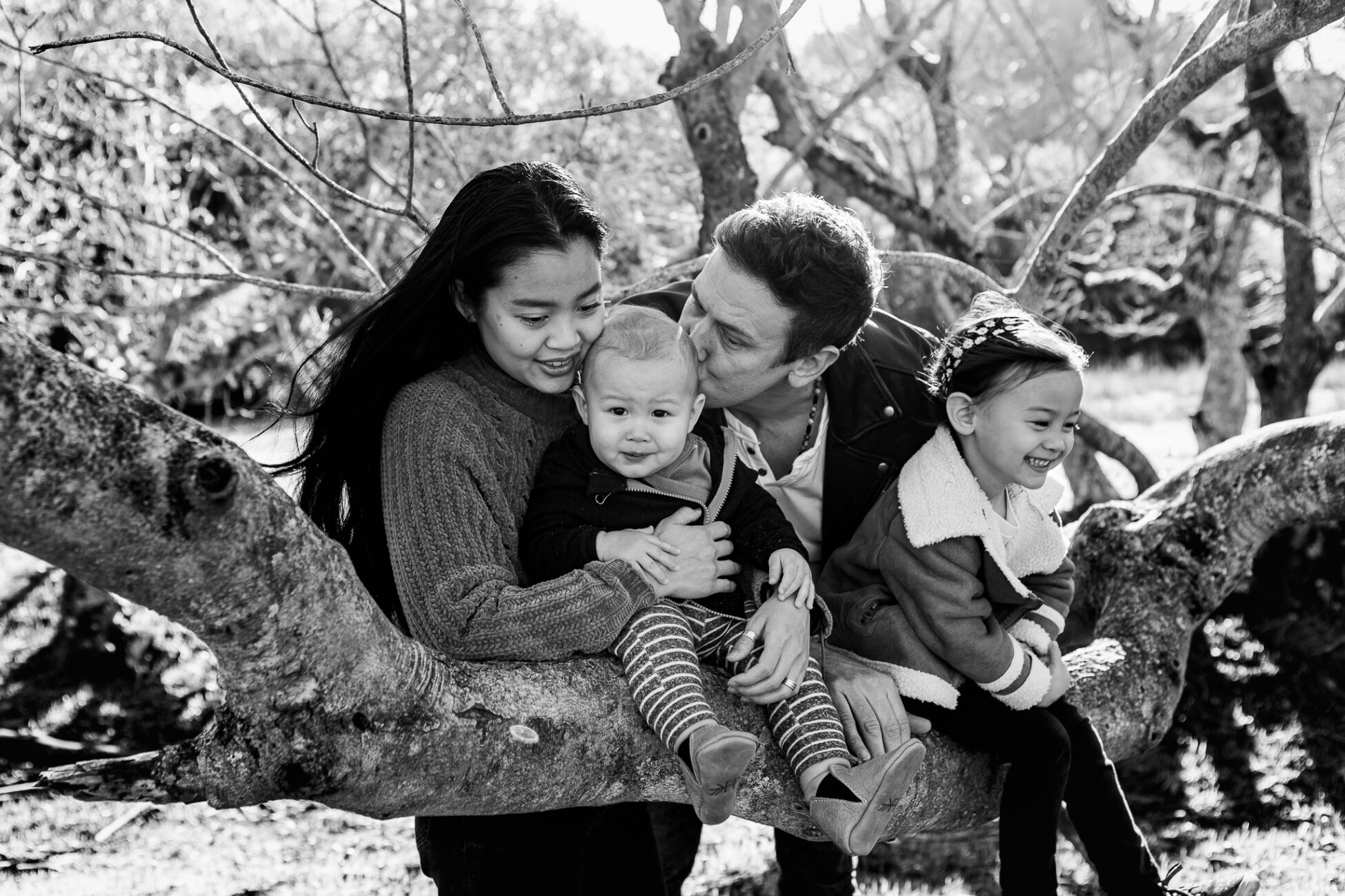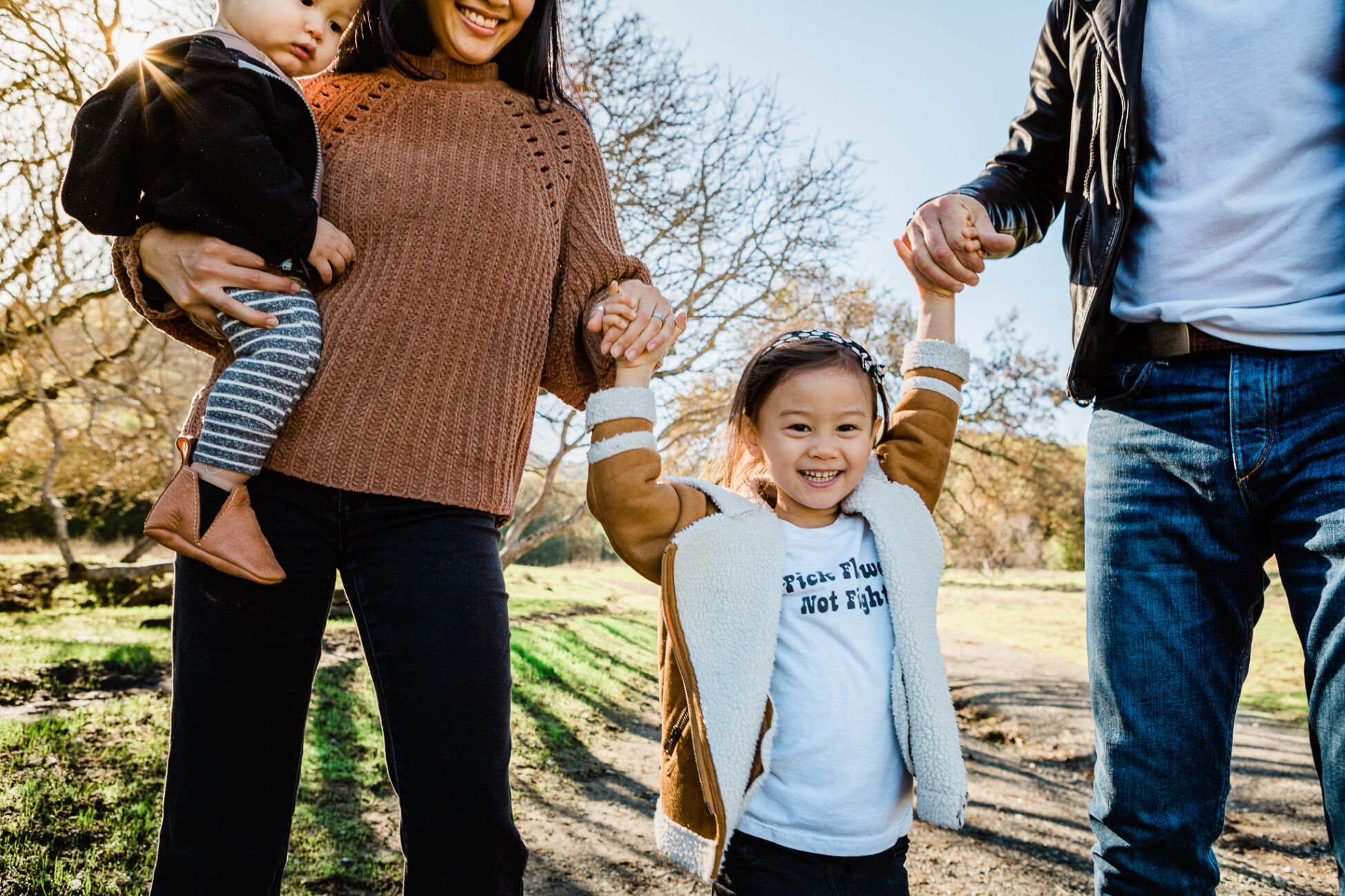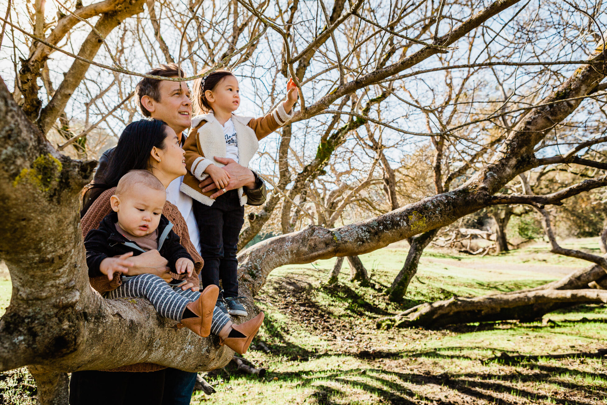 This family has a deep love of exploring nature, so we spent our time wandering through the trees in a local open space park. The husband and wife enjoy classic suspense films with rich, saturated tones, so I used a more dramatic editing touch.